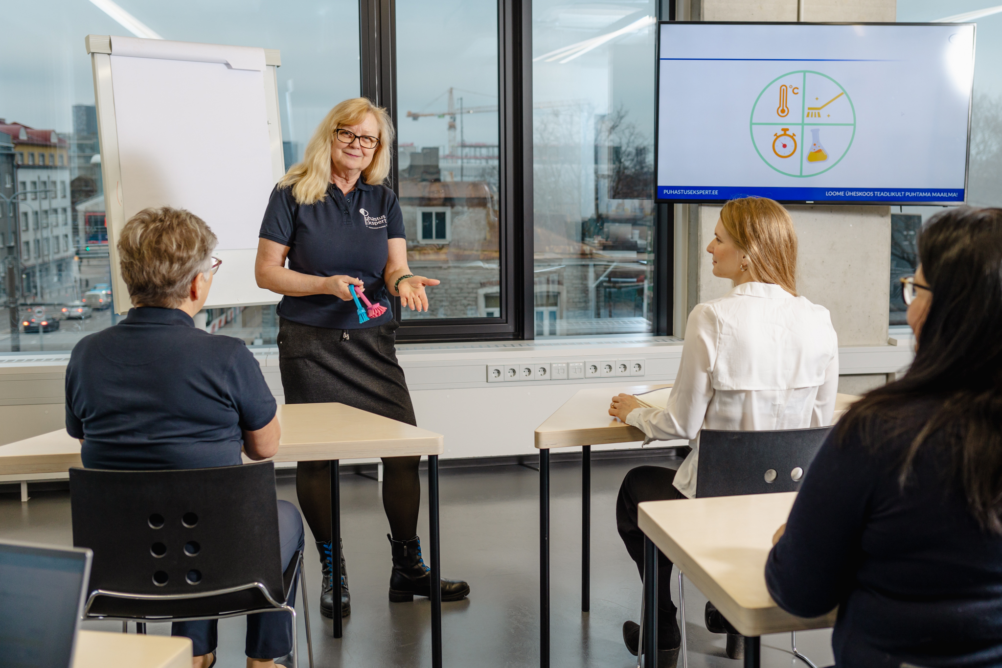 Loome koostöös kliendiga tema vajadustest lähtuvad õppevideod, mille sisu tootmisel arvestatakse kliendi eripärasid ja funktsionaalsust. Õppevideote kasutamisel saad oma personali koristusalased teadmised ja oskused tõsta uuele tasemele. Enam ei pea töötajad osalema klassikoolitusel, vaid koolitusmaterjal on nüüd kõigile kättesaadav kogu aeg ja igal pool. See muudab järjepideva koolitamise ja ajaplaneerimise oluliselt lihtsamaks ning efektiivsemaks, mis toetab kestlikku mõtteviisi.